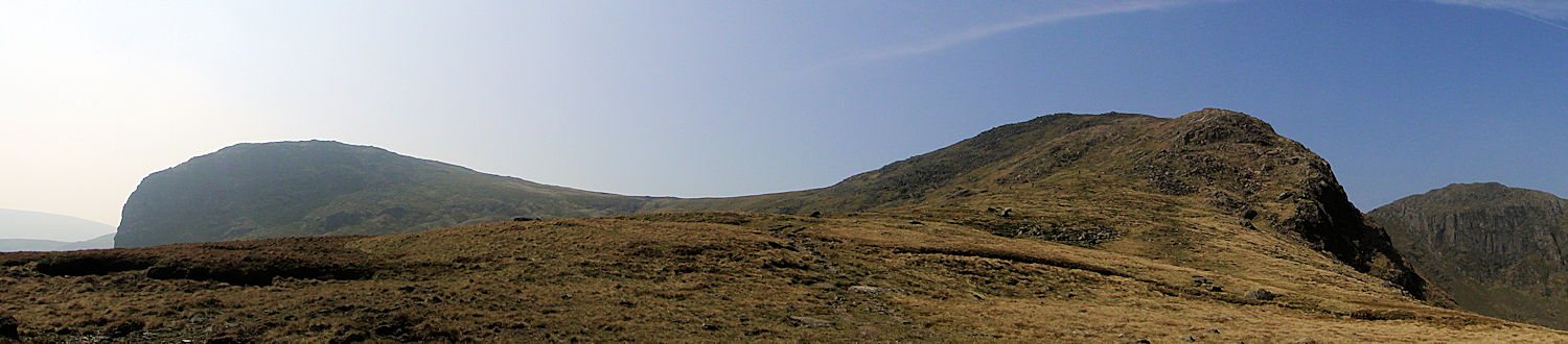 Natural symmetry, Dove Crag and Hart CragUnlike the break on Hartsop above How the break on Hart Crag had worked wonders. No doubt so had the liquid intake and at last the nausea was gone. Still not at my best I at least now kept the pace and thus the company of my pals. I was enjoying the walk again. We reached and passed Dove Crag without fuss and looked across the wide high expanse of Bakestones Moss to Little Hart Crag, the fourth Wainwright Fell of the walk distinctly providing a suitable target beyond. I was actually bounding along now and through the wall I emerged relieved it was all over.