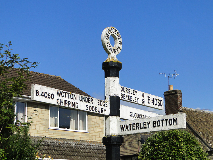 North Nibley SignpostThe climbing from the brook to North Nibley had been done in the sweltering heat of the midsummer morning and without any cover from the sun so I decided to treat Mark to an ice cream when we arrived in the village. If we could find a shop in the village that was and by observation of watching local people walk in the same direction unladen and in the opposite direction with Newspapers tucked under their arms and/ or with provisions I worked out where the local store was. There were a couple of ladies in the shop queuing before me and another couple of ladies outside the shop chatting. Mark waited outside while I waited my time to be served. After as minute or so I heard a lady exclaim "You cheeky monkey" which was followed by a giggle from the ladies. The shop door then opened and an elderly gentleman with a walking stick walked in and waited to be served. With ice creams in hand I walked out of the shop and joined Mark. The ladies were still there and all seemed fine while Mark and I enjoyed our ices. Then the old chap came out of the shop and tried to pat a lady gently on the bottom with his walking stick. It transpired this was normal behaviour which all parties accepted. "They enjoy a bit of attention" he said to us while winking and walking off. He smiled as he left. The ladies smiled at us and we smiled back.
