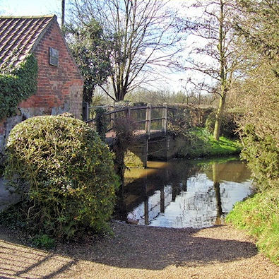 Good walking along headland pathsImmediately our route takes a footpath left and follows the twists and turns of the mill stream, its power now spent. Looking back I can see a scene that Constable would have been pleased to capture on canvas. Entering Caythorpe the house by the bank has a carpet of daffodils and the weeping willow tree is just coming into fresh green leaf, Spring is here. I nearly miss the next mill despite the car having Olde Mill Pottery lettered on the rear. It's the old gear wheel in the wall I initially spot. When I study the map I see that these mills are on the Dover Beck which has Lowdham Mill further upstream passed on a previous walk.