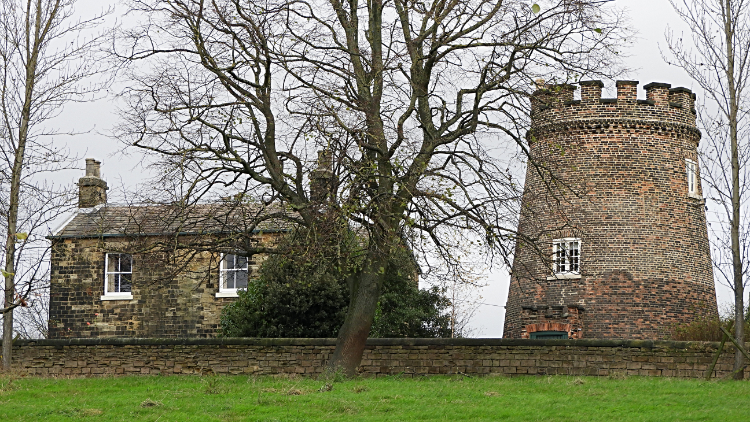Wentworth WoodhouseFrom Holy Trinity Church I had the choice of starting my walk by heading south-east on the back lane by following the path of the Rotherham Round Walk or by walking down Church Drive to the main street and walking through the village. I chose the main street, passing some pretty cottages with lovely well kept gardens. Paradise Square a community of cottages standing around a communal green was particularly striking and at the eastern end of the village I came to first the Millennium Beacon and then I passed the Rockingham Arms which was looking pretty in the cover of Virginia Creeper. The climber was just about hanging on to its golden red foliage while lapsing into the darker days of mid-November day. Nearby trees were all shed of leaf and one next to the pub now revealed a number of substantial bird nests in the higher reaches. A rookery perhaps. Looking north across a field after passing the Rockingham Arms my eyes were drawn to a circular building with a castellated top on Clayfield Lane. I guessed it was a converted windmill. With that thought I turned from the road which had led me through the village and entered the grounds of Wentworth Woodhouse by way of a lodge gatehouse. A sign told me that at this point on my walk I was following the Trans Pennine Trail as well as following the Rotherham Round Walk.