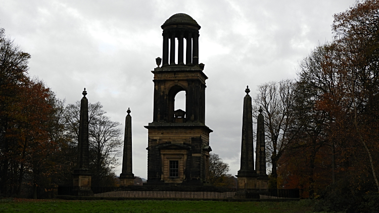 Hoober Stand WoodFollowing the short B6090 through Hoober, which is no more than a row of houses, led me to the next monument of my walk. I was bearing down on Hoober Stand. A tapering pyramid with a hexagonal lantern, named for the ancient wood in which it was erected, Hoober Stand was erected commemorate the defeat of the Jacobite rebellion of 1745 which many of the edifices of Wentworth Woodhouse do. It was one of the finest hours of the family after all. Leaving their bloody creations aside the follies, mausoleum and stand, are quite impressive and very imposing structures on the landscape. Hoober Stand Wood was also super to walk through, a wood of carousel humps and hollows. Even in the sad fall of leaf to winter it had a grandiose appearance. I chose to enjoy my lunch in Hoober Stand Wood.