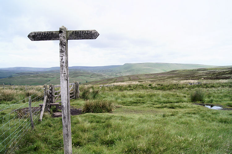 On the moorland track by Pike LowAt the lost village of Derwent I came across a group of about 25 walkers, most of a mature age. They were setting off as I arrived by after leaving the site of the abandoned village and leaving the track to ascend on a path to Briery Side I came across them again. After catching the stragglers I talked to a lovely elderly gentleman who told me they were the Huddersfield Ramblers. We continued chatting away as we ambled up the bank together, he apologising for interrupting my solitude while thanked him for his polite conversation. The gentleman told me he was in his eighties and that he will continue walking until his legs will carry him no more. I told him I vowed to too. Then as we reached the moorland and the track levelled out I stopped to let him continue on and catch his colleagues. "I know where they are going and I like to wander by myself anyway" he said. "Much like I sometimes" I replied. And then we parted to continue our enjoyment of the day.