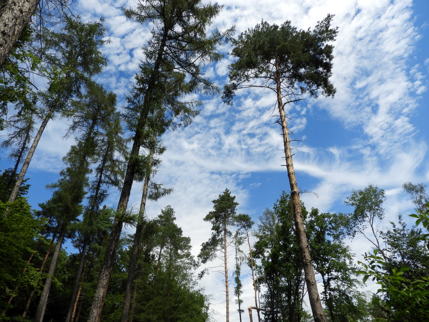 Beautiful views overheadOver the last hour, from Sinzig and into the forest for lunch, blue skies had begun to appear overhead and now, on resumption of the walk, the sun had started to break out. With it doing so the day warmed up and the pleasant walking temperature of the first half of our day had now become stifling. In truth, it became very hot very quickly. From seeking the sunshine we opted to seek the shade, walking on the side of the wide forest track which offered most respite from light. We both covered our heads with lightweight tubes to keep the sun from frying our bonces. My follicular challenged one in particular!