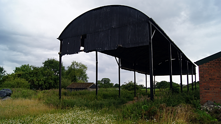 Hanging onCrossing a road near Welsh End I came to a field where the Shropshire Way was hemmed in to a narrow strip on the left hand side. Barbed wire marked the demarcation line. I titled it 'the gate of discomfort' because there was no way I was going through it. The field was used for farm stock and thus had short cropped grass; easy to walk over. The narrow line of the Shropshire Way was completely overgrown. The grass was over waist high. There were brambles untended and swathes of nettle growth too. I left the walkers gate and jumped over the field gate, walking easily across to the next field. This one had very inquisitive cows. As I walked across it they came across the field, sniffed at me with their wet noses and then proceeded to follow me as if I was the Pied Piper. They were no problem despite the close attention. After the bovine encounter I came to an old farm with old farm buildings and falling over bits and pieces. Then, just as I reached the hamlet of Hollinwood I had loud bangs, noticed flashes of light and ascertained a storm was coming. "This is going well" I said to myself, remarking on the start of my Shropshire Way adventure. Two minutes later it was pouring down.