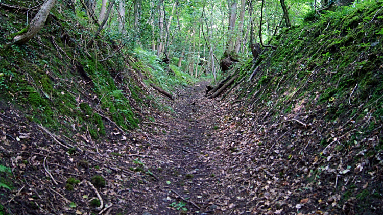 Holloway path through Benthall Edge WoodThrilled already, and by the thought of more adventures in the next seventeen miles, I followed the Shropshire Way out of Ironbridge by way of Benthall Edge Wood which involved a climb of over 100 meters. A good start to my day then; I do like an early climb to warm me up for the rest of the day. It was not an unbroken climb though. On the way along the path I stopped quite a few times to observe natural delights and to respect relics of the industrial past. The first of these was Benthall Edge Lime Kiln, one of many that worked the slopes of the woodland in the past. There were disused limestone quarries scattered just off the line of the path too, all now being reclaimed by nature. There were Wild Cherry, Ash, Wych Elm and an abundance of Sessile Oaks in the woods, many of which I stopped to admire. And to my delight the path sunk into holloways in many parts of the trail. I love holloways, always imagining the thousands, more like millions of footsteps that had gone before me to make such an depressed impression on the path making its way through the woodland of limestone and shales. Benthall Edge Wood is stunning. As with Ironbridge Gorge at the start of todays walk, it was a shame to leave Benthall Edge Wood too.
