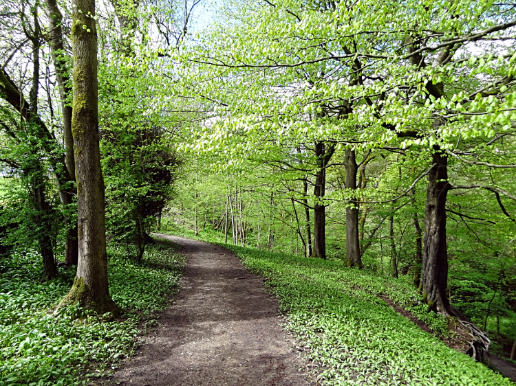 Summary: I cannot think of a better way to spend an hour walking than in pretty woodland, especially in springtime when Bluebells are in flower and when Wild Garlic is flourishing. It is one of my highlights of the walking season. Skipton Castle Woods is a fine place to walk all year round but in May it is just spectacular when the scent of Wild Garlic fills the air, complementing the Bluebells and other spring flowers which make an appearance. Come here when you can; you will not be disappointed.