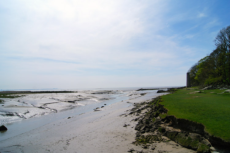 Warton SandsAfter leaving Jenny Brown's Point I walked from the National Trust site and back to the leafy shaded metalled road leading south and east around the coastline to Brown's Houses. At the houses the road abruptly ended and at this point I was forced to walk off the track and around the house wall by clearly marked No Entry signs. Fair enough but I thought there would be a sign indicating the way around. After all I was on the Lancashire Coastal Way. despite this there was no indication of which way to go around the private dwelling and only by looking was it clear I would have to clamber down collapsed concrete ramps to the shore. I clambered around and then climbed back up the bank when beyond the houses and the land they occupied - note it says Brown's Houses but as far as I could see there is only one. After Brown's Houses I followed the coast past an old Lime Kiln chimney near the expanse of Warton Sands and it was here I saw my second gushing watercourse as water spewed quickly from appropriately named Quicksand Pool into the bay. I stayed well clear of the quicksand.