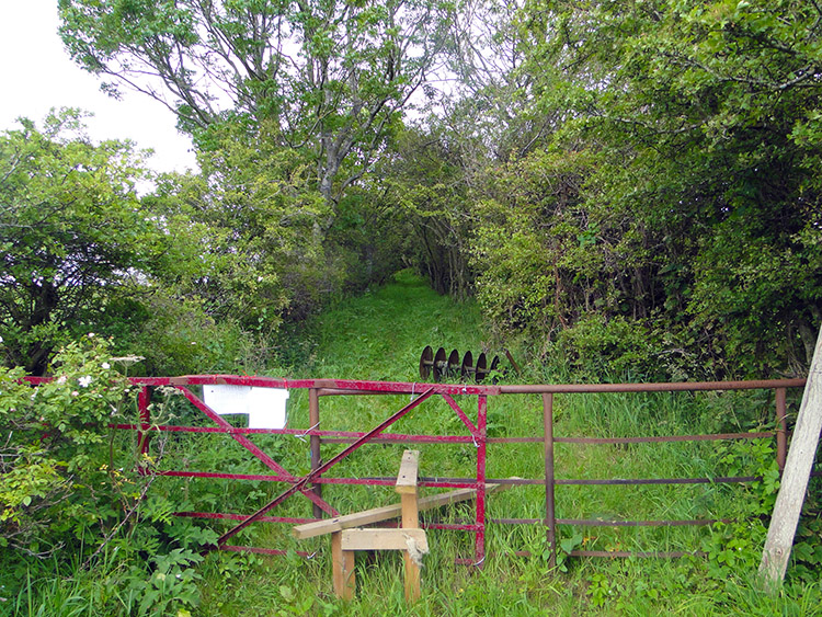 The path I had to followThe sign promised a walk along the path, which albeit safe, would provide views of steep cliffs and a view of Stonebyres Falls. I had been looking forward to this part of today's walk but I was to be denied. Repair works were being carried out to the bridge crossing the Clyde into Lanark and from here my progress was prohibited. I was gutted and left to imagine what might have been. Disappointed I followed the detour which took me steeply uphill across a field to a stile which I crossed to follow a green lane to the hamlet of Nemphlar.