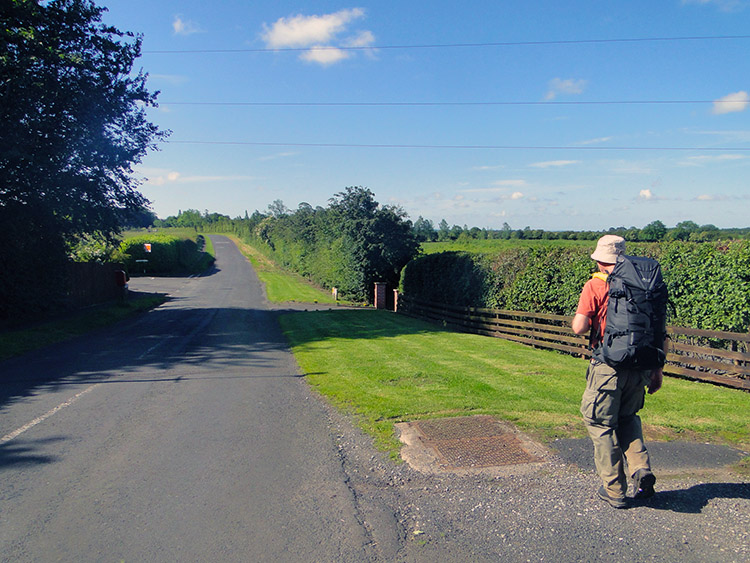 St Michael and All Angels Church, LongtownWe were in really good spirits as we walked out of Longtown on a B road leading us south on a line as straight as an arrow. We had enjoyed a good meal in the Graham Arms Inn last night which was followed by a few beers in the company of good natured locals. After a good nights sleep and a good breakfast in the morning we had stocked up for the day at a local shop near the Graham Arms Inn and set off walking out of town with our coats stowed in our backpacks. In 35 days of walking this was the first time I had done that. What not was there to smile about. We rambled along the traffic free B road which led to nowhere and soon came to an impressive church. We took a good look as we passed St Michael and All Angels Church and carried on walking to a point on my map called the Fauld.
