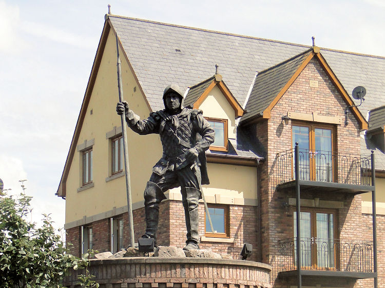 Wood carved Owl in Bitts ParkWe continued to follow the course of the A7 into Carlisle. The road was becalmed now though by the urbanisation on either side of it. Parts of the road were dual carriageway and parts of the road not but the flow of traffic was kept to a steady pace by road junctions, crossroads, bus lanes, traffic calming measures and pedestrian crossings. Of particular interest to me as we walked was a bronze statue dedicated to Border Reivers stood on an elevated plinth beside the A7. Border Reivers were once the scourge of urban inhabitants, all thieves, stock rustlers and robbers. Now they are romantically immortalised and celebrated. After the statue we came to hotel with about a dozen foreign flags flying outside. Between us Steve and I identified them all. With the interludes mentioned and foot stomping of tarmac footpath between we eventually came to Bitts Park.