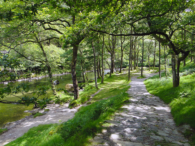 Castle CragWe had covered almost six miles of walking when we reached Grange. We had hardly noticed. The paths we had followed were entirely flat with not an ascent and not a descent. It had been the easiest six miles of all I had done in six weeks. We walked through Grange and continued into the heart of Borrowdale. Through lowland woodland we went in the plains of Borrowdale, first via Holmcrag Wood and then through Dalt Wood. Lush grasses and ferns edged each side of the paths on this stretch of walking, some of which were duckboard footways. Another prominent hill loomed large ahead of us. Castle Crag is only 290 metres high and the lowest of all Wainwrights 214 Lakeland Fells but it looked high enough when we walked right by it. At Castle Crag we started to climb ourselves, our first ascent of the walk after over six miles.