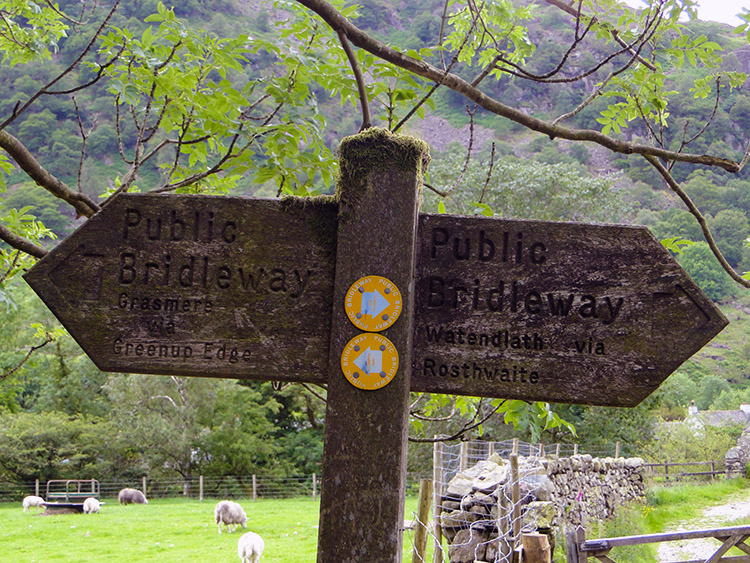 The descent from Greenup Edge across Grasmere Common to Far Easedale was almost as steep as the climb we had enjoyed up to the edge from Borrowdale. Only it did not feel like it. Barring a few short steep sections over rock outcrops it was a doddle. Perhaps the euphoria of being in such perfect Lake District surroundings and the sense of achievement in passing my 500 mile flag made it so. All I can say is that I wish I was there now doing it all again. Then again there are many other moments in many other places where I could say that. But right now as I write this record down crossing Grasmere Common is the moment and the place which is fixed in my minds eye.