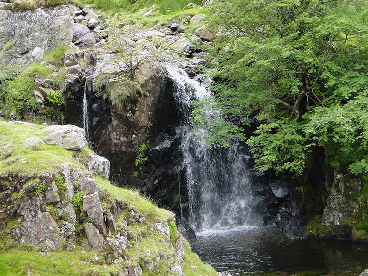 The beginning of the walk from Rosthwaite up the dale is a delight with the sight of Eagle Crag being an enticing draw. Quite magnetic. The first mile and a half up the dale to Smithymire Island was easy, a gentle draw uphill with Eagle Crag looming ever closer on the eye. Only 50 metres of height were gained in that stretch of walking. At Smithymire Island we reached the point of parting ways with the Cumbria Way. Smithymire Island is also the point where Stonethwaite Beck originates at the confluence of Langstrath Beck and Greenup Gill. The Cumbria Way now headed south west by crossing Stonethwaite Beck by a footbridge and continuing on to the head of Langstrathdale and across Stake Pass to Mickleden. Our course continued by following Greenup Gill upstream on a south-east course. The gentle incline we had enjoyed since leaving Borrowdale was now over as our climb steepened.