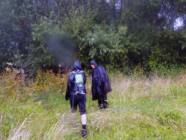 It had not rained for a week and it returned with a vengeance. Such a shame that its return coincided with the visit of Pip Weston, who I am sure John, Tim and Ken will concede, was the prettiest of all the guests who joined me for a stage of my long walk. As the boys had done, Pip had also followed my progress down the length of Great Britain by reading my blog reports. Being local to the area Steve and I were to walk today Pip had picked this stage as the one she would join us on. She had not picked the weather.