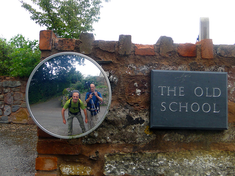 Back to schoolAfter the enjoyable mile of walking through woodland Steve and I followed lanes and crossed fields of short grass pasture which led us up to the highest point of our days walking near Owls Hill Farm from where we began a steady descent towards the village of Kingston St Mary. Most of this was by road but much different to the road we had walked earlier. The roads from Owls Hill to Kingston St Mary via Volis Cross were all Holloways. In a sense we were channelled down the roads to the village, not being able to see beyond earth banks to our right or left. Constant traffic over lots of time had eroded the roads to about six feet below the neighbouring ground. The downhill walk through the blinkered channels brought us into Kingston St Mary soon enough.