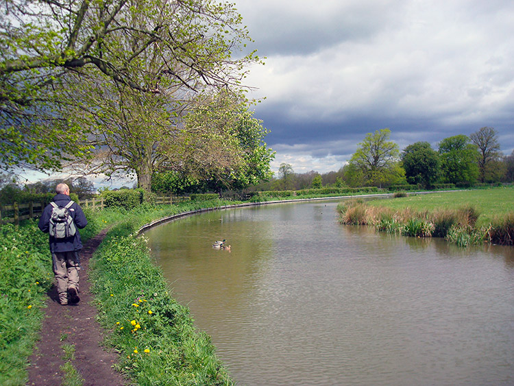 A family outingWe left the battlefield well behind us as we began our walk along the canal. Just as we reached it we met another walker who described his thorough enjoyment in walking in these parts. We could not argue with his choice, we were a world away from industrious activity and close to nature. As we begun our walk on the towpath of the canal we often came across courting wildfowl and then caught a glimpse of a new spring family, ducklings keeping as close to mum as possible.
